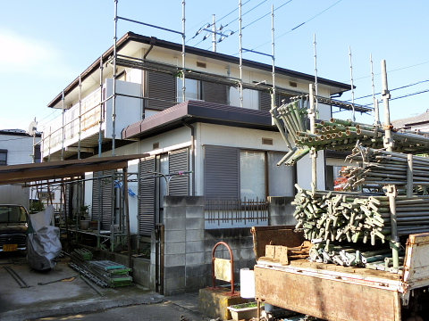 今日は、当社の近く八潮6丁目O邸の屋根外部改修工事の為朝8時~足場架設工事。12.30には全て完了月曜日から本格的に工事が入る、ただ天候が不順で、スムースに行くかどうか |